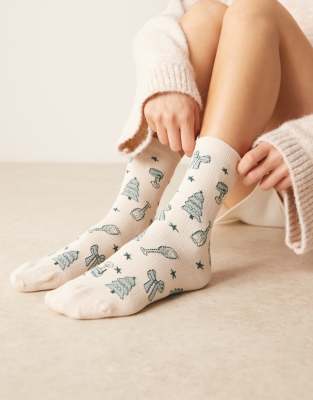 Socks & Tights by ASOS DESIGN Festive design Ribbed cuffs Mid cut