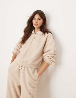 Lingerie & Nightwear by ASOS DESIGN Includes a fleece and joggers Regular-fit fleece Spread collar Partial zip fastening Long sleeves Regular tapered joggers Elasticated drawstring waist Side pockets