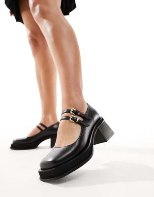 Shoes by WALK LONDON Adjustable straps Pin-buckle fastening Square toe Platform sole Mid block heel