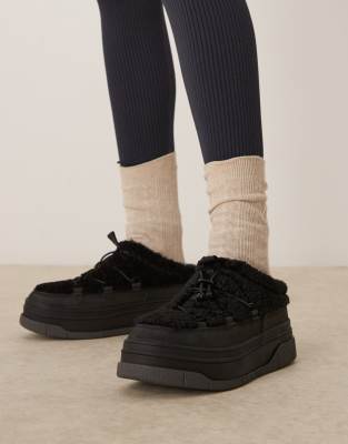 Shoes by Pajar Endless outfit opportunities Elasticated toggle front Borg style panels Open back Slip-on style Round toe Chunky sole Textured tread