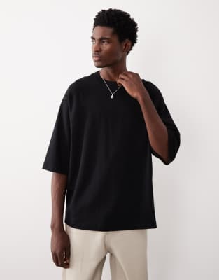 T-Shirts & Vests by ASOS COLLECTIVE Part of the ASOS COLLECTIVE range 300g heavyweight interlock jersey double layered feel Deep crew neck with a ribbed trim Internal bound back neck Elbow-length raglan sleeves Super-oversized slouchy fit