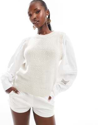 Επισκέψου το κατάστημα Asos για να δεις περισσότερες λεπτομέρειες και φωτογραφίες για το French Connection Klara mix 2 in 1 jumper in cream-White. Για αγορά του French Connection Klara mix 2 in 1 jumper in cream-White πρέπει να επισκεφτείς το κατάστημα Asos.