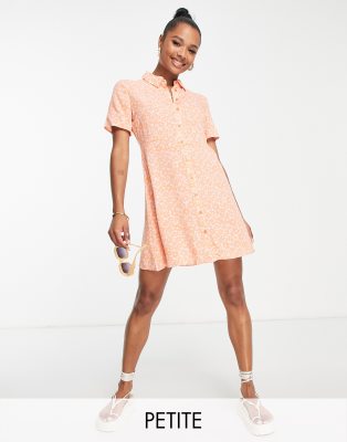 Petite dress by PIECES Exclusive to ASOS Floral print Spread collar Button-through front Short sleeves Regular fit