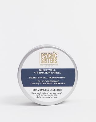 Candle by Psychic Sisters For filling that blank space Contains a hidden crystal within Features a soothing chamomile and lavender fragrance Scent is designed to help promote relaxation and restful sleep Single wick Product is non-returnable for hygiene reasons Never leave burning candles unattended