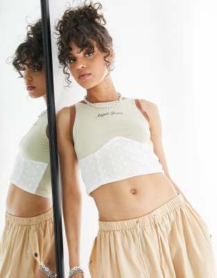 Επισκέψου το κατάστημα Asos για να δεις περισσότερες λεπτομέρειες και φωτογραφίες για το Zemeta crop vest top with broderie corset detail and angel text-White. Για αγορά του Zemeta crop vest top with broderie corset detail and angel text-White πρέπει να επισκεφτείς το κατάστημα Asos.