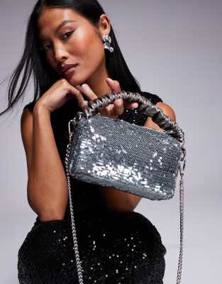 Accessories by ASOS DESIGN Bagging compliments Ruched design Sequin embellishment Top handle Detachable crossbody strap Can be worn on the shoulder or across the body