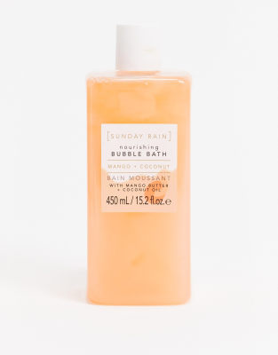 Face + Body by Sunday Rain Nourishing bubble bath Designed to cleanse and scent the skin Mango and coconut scented Formulated with hydrating coconut oil and mango butter Product is non-returnable for hygiene reasons
