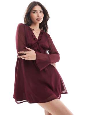 Επισκέψου το κατάστημα Asos για να δεις περισσότερες λεπτομέρειες και φωτογραφίες για το Wednesday's Girl floaty ruffle mini dress in deep burgundy-Red. Για αγορά του Wednesday's Girl floaty ruffle mini dress in deep burgundy-Red πρέπει να επισκεφτείς το κατάστημα Asos.