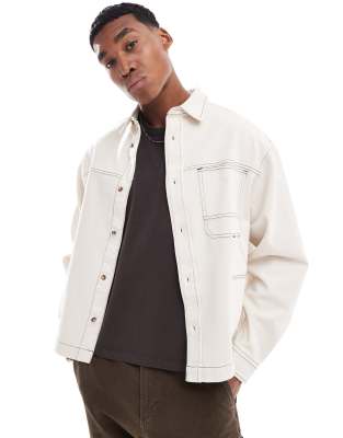 Shirts by ASOS DESIGN Top-half options Spread collar Button placket Long sleeves Chest pocket Contrast stitching Oversized fit