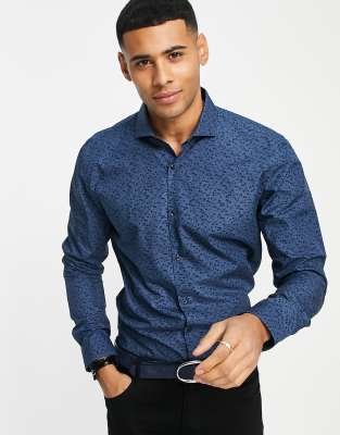 Shirt by Hugo Boss You choose the occasion All-over print Spread collar Button placket Long sleeves Extra slim fit