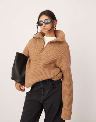 Jumpers & Cardigans by ASOS EDITION Embrace your softer side High neck Partial zip fastening Turn-back cuffs Relaxed fit