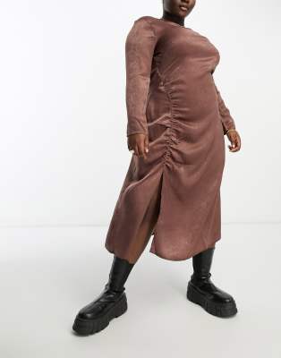 Επισκέψου το κατάστημα Asos για να δεις περισσότερες λεπτομέρειες και φωτογραφίες για το Violet Romance Plus satin ruched side midi dress in brown. Για αγορά του Violet Romance Plus satin ruched side midi dress in brown πρέπει να επισκεφτείς το κατάστημα Asos.