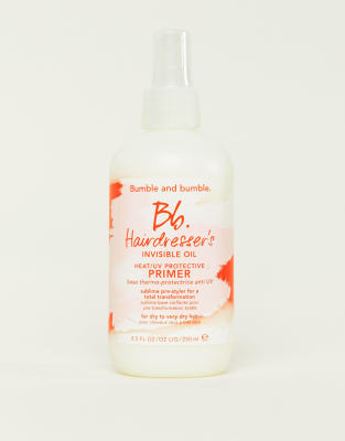 Invisible oil primer by Bumble and Bumble Protective hair primer This one’s a mane-changer Suitable for dry to very dry hair Contains a blend of six feather-like oils help to soften silken tame de-frizz detangle and protect against breakage without weighing hair down Protects against breakages and heat styling UV filters offer sun protection for your hair Product is non-returnable for hygiene reasons