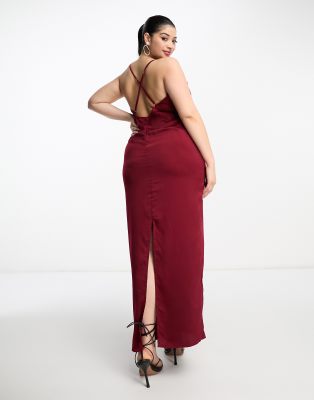 Dresses by NaaNaa Plus All other dresses can go home Cowl neck Adjustable straps Zip-back fastening Kick split Slim fit
