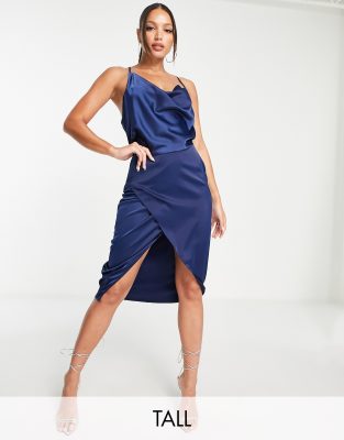 Tall dress by Missguided All dressed up Cowl neck Cami straps Wrap skirt Regular fit