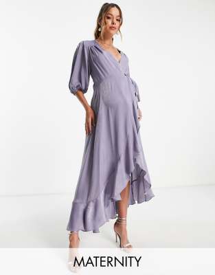 Maternity by Flounce London Maternity All dressed up Wrap front Puff sleeves Tie waist Regular fit Designed to fit you from bump to baby