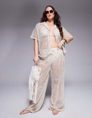 Swimwear & Beachwear by South Beach Curve Part of a co-ord set Shirt sold separately Sequin embellishment Tie waist Wide leg